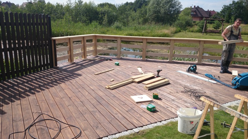 Jesteś tutaj: HomeGaleriaMontaż deski tarasowej oraz wyrobienie i zamontowanie balustrady, deska sosna. Białystok-Klepacze. Zdjęcia przedstawiają kolejne etapy prac.