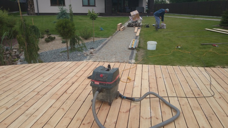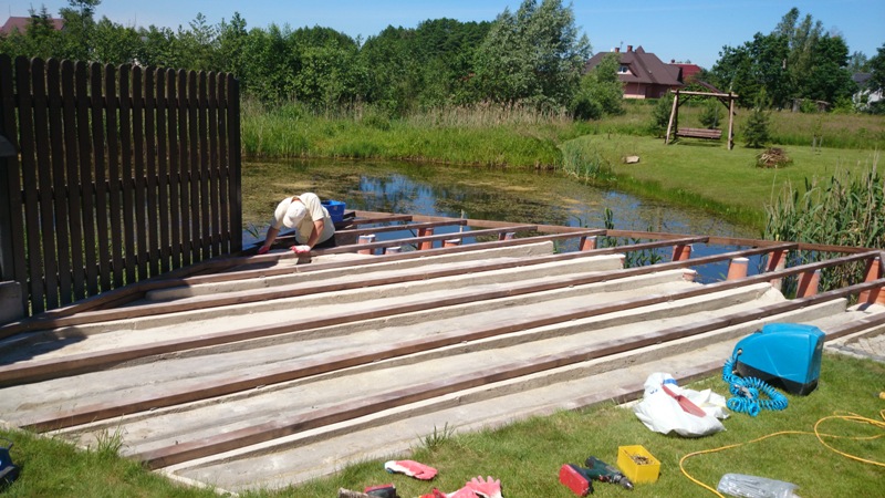 Jesteś tutaj: HomeGaleriaMontaż deski tarasowej oraz wyrobienie i zamontowanie balustrady, deska sosna. Białystok-Klepacze. Zdjęcia przedstawiają kolejne etapy prac.